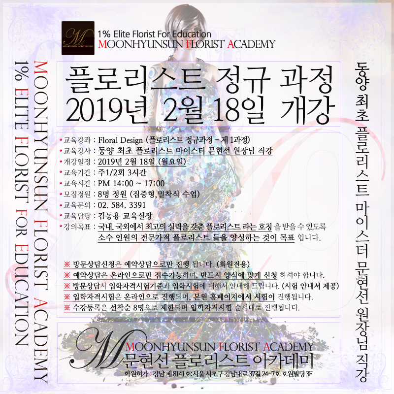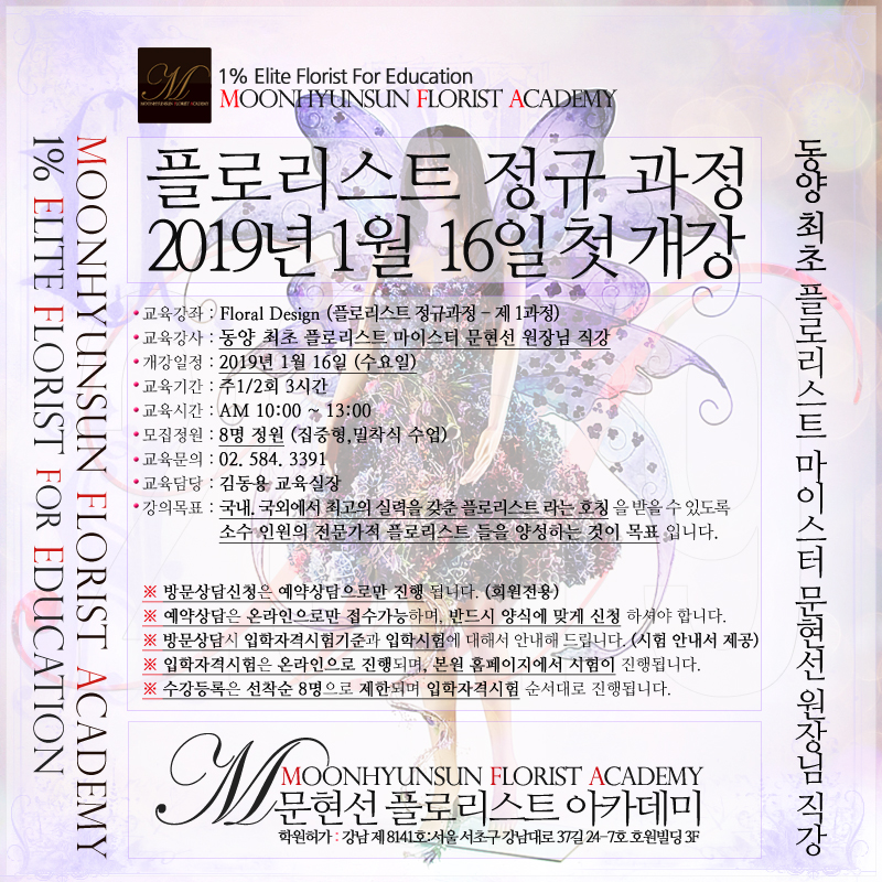 [ 2019년 1월 16일 첫 개강 플로리스트 정규과정 개강 ]