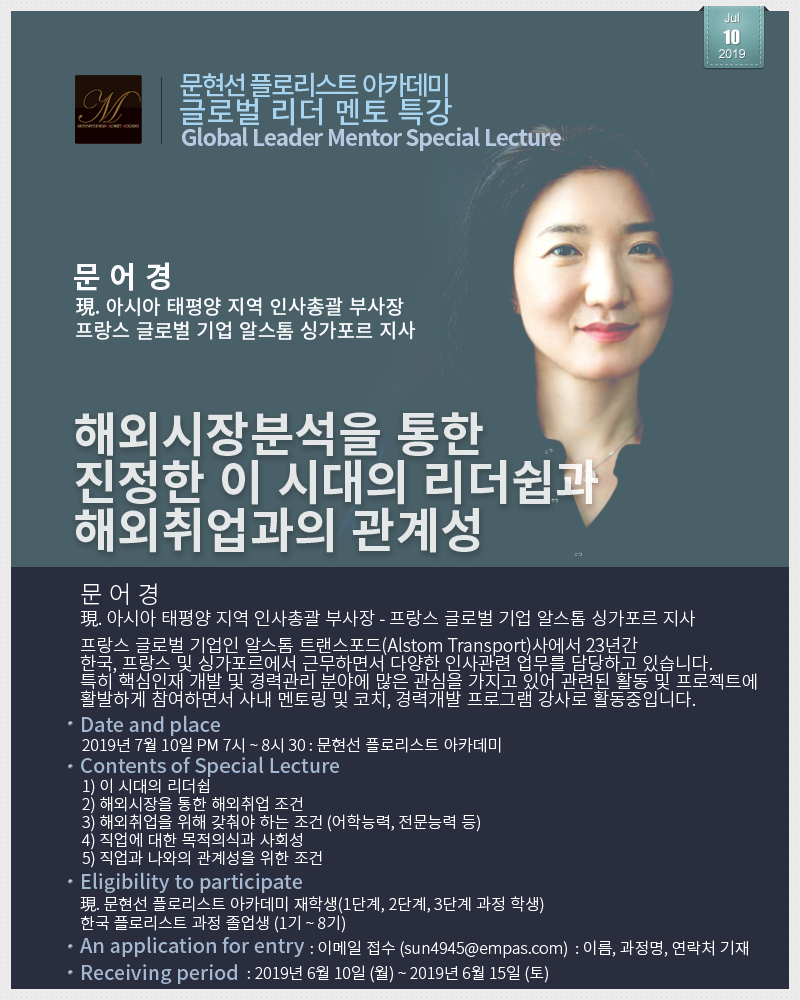 글로벌 리더 멘토 특강 - 문어경 (알스톰 아시아 태평양 지역 인사총괄 부사장)